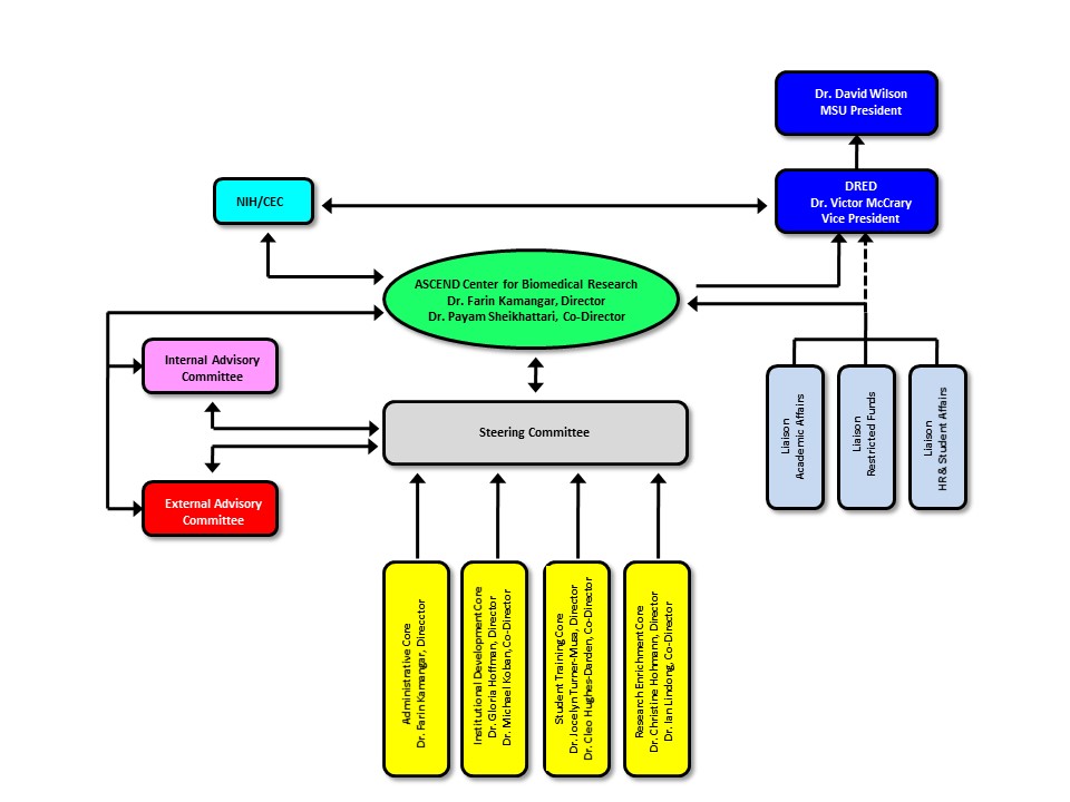 This award established the ASCEND Center for Biomedical Research at Morgan State University. The organizational chart follows.