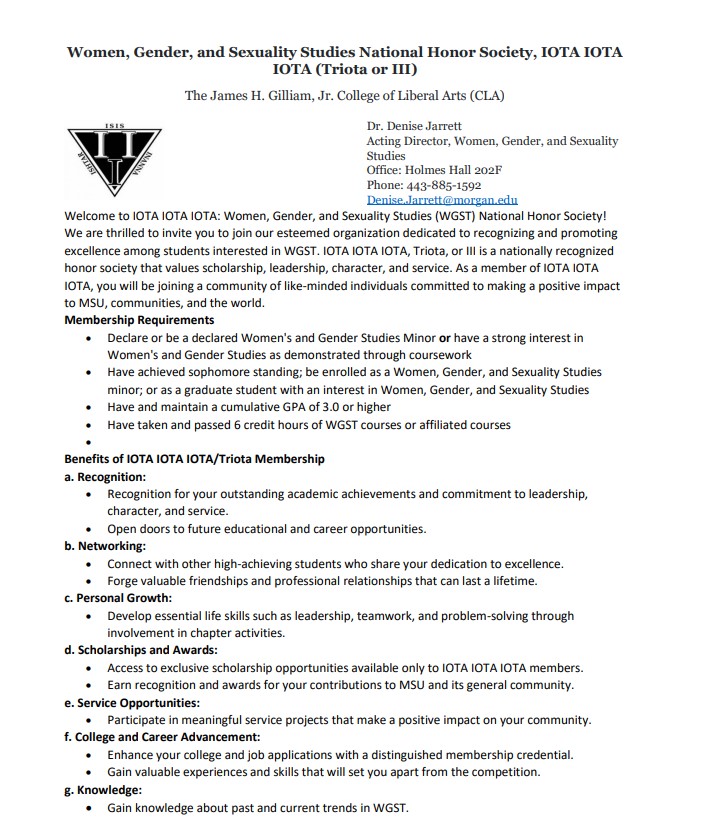 Women, Gender, and Sexuality Studies National Honor Society, IOTA, IOTA, IOTA (Triota or III)