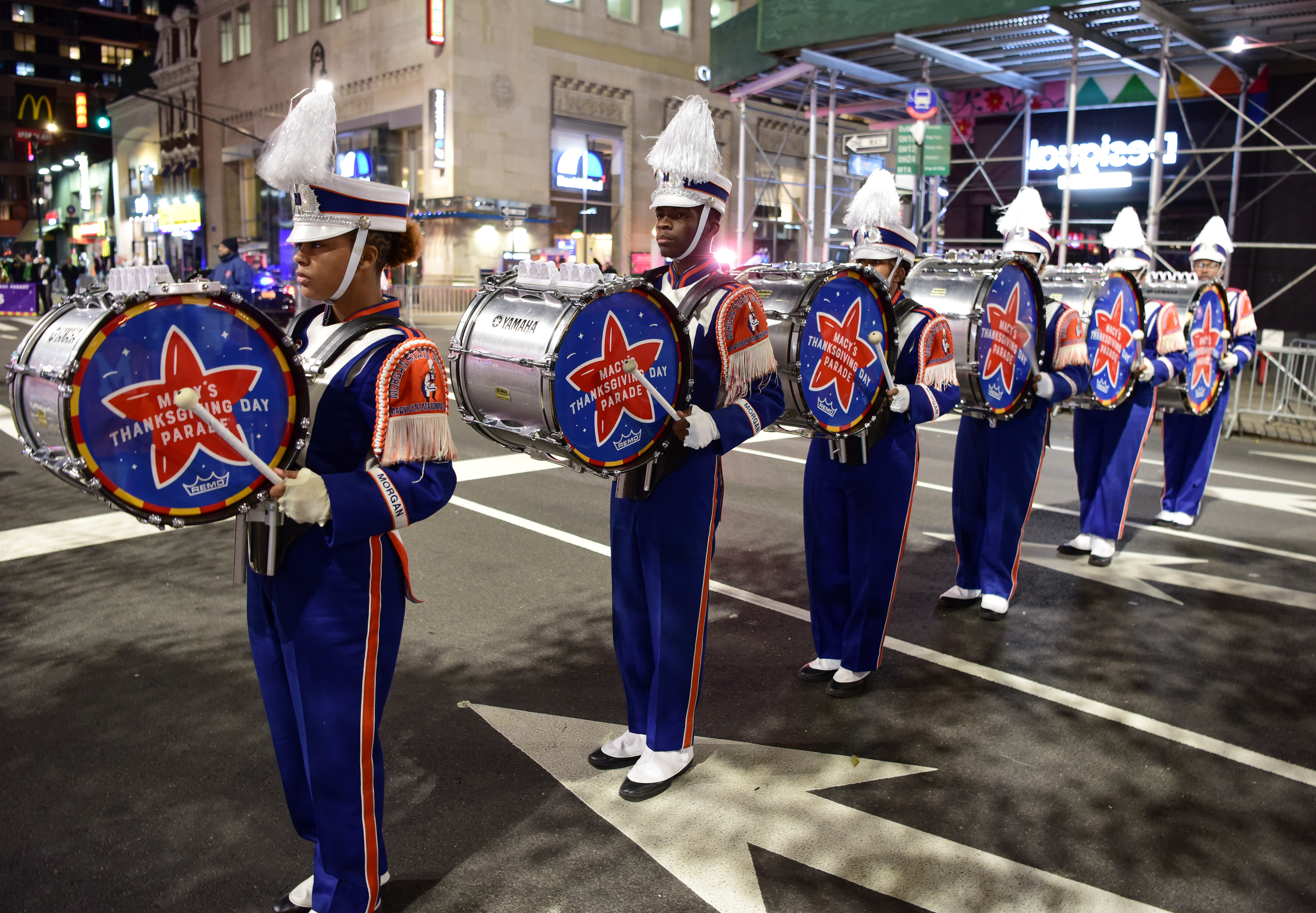 pictured: The MSU Magnficent Marching Maching band members prepping for the 93rd Annual Macy's Thanksgiving Day parade in New York City.