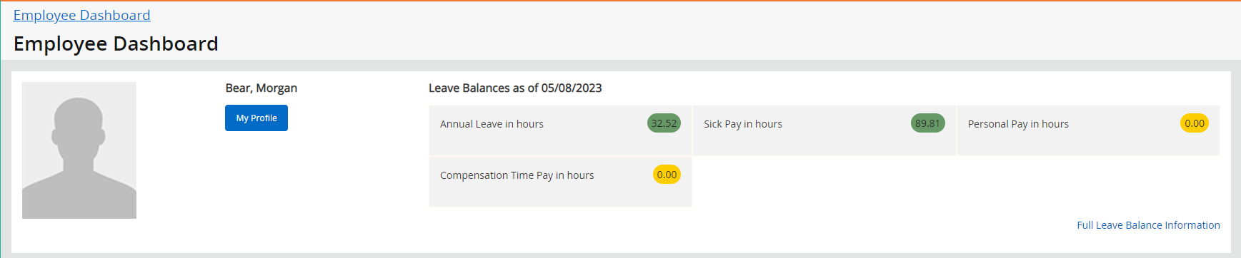 Check your leave balance by signing into Banner/Websis Self-Service (the same place where you complete your timesheets), and your leave balances will be displayed on your Employee Dashboard: