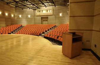 PLEASE NOTE: Due to the acoustic design of the front of the house, we strongly discourage the placing of speaker stacks on the stage, as excessive echo slap-back occurs, severely hindering intelligibility.