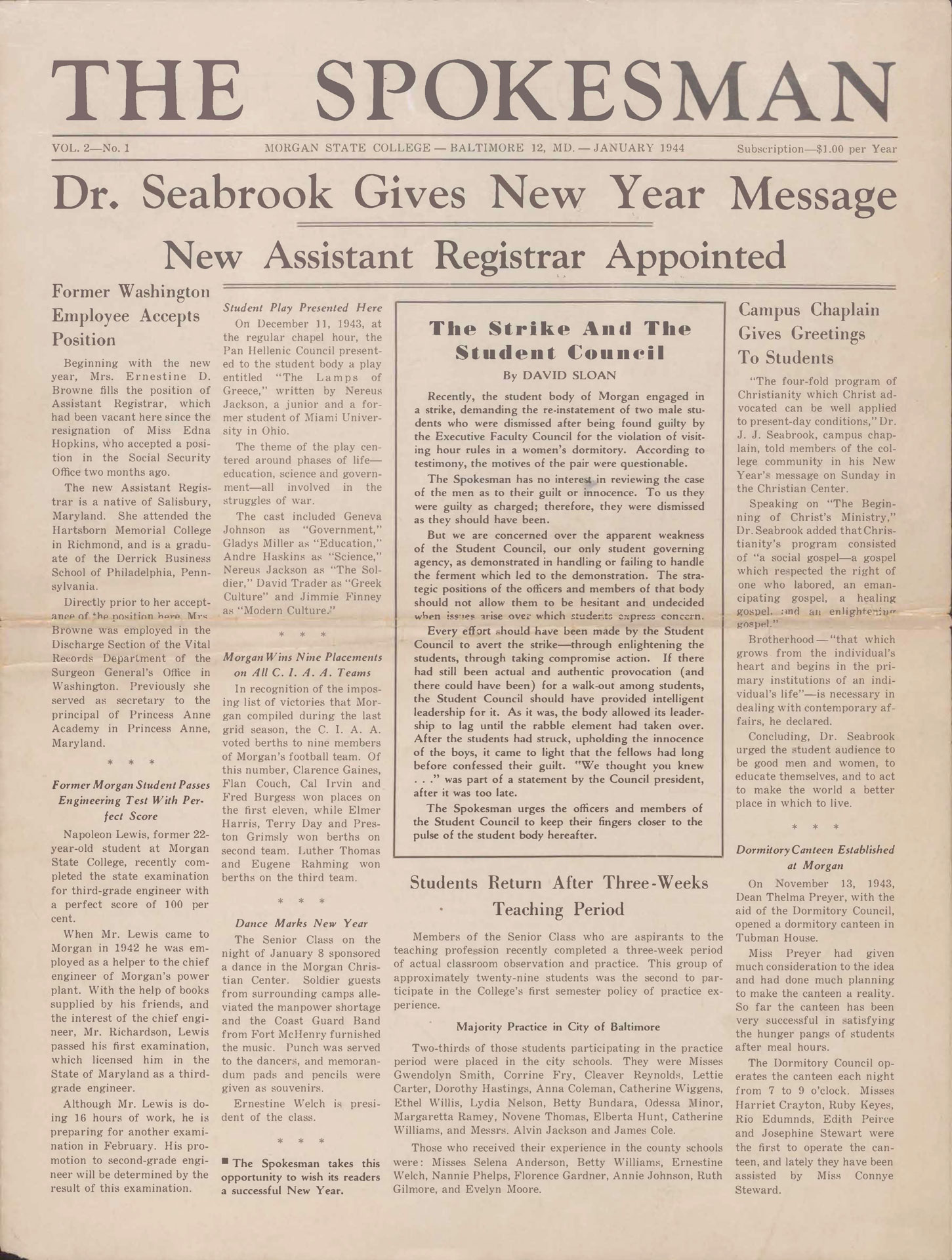 - The Spokesman – Over 250 issues of Morgan’s student-produced newspaper from 1944 to 2012 before it transitioned to an online platform.