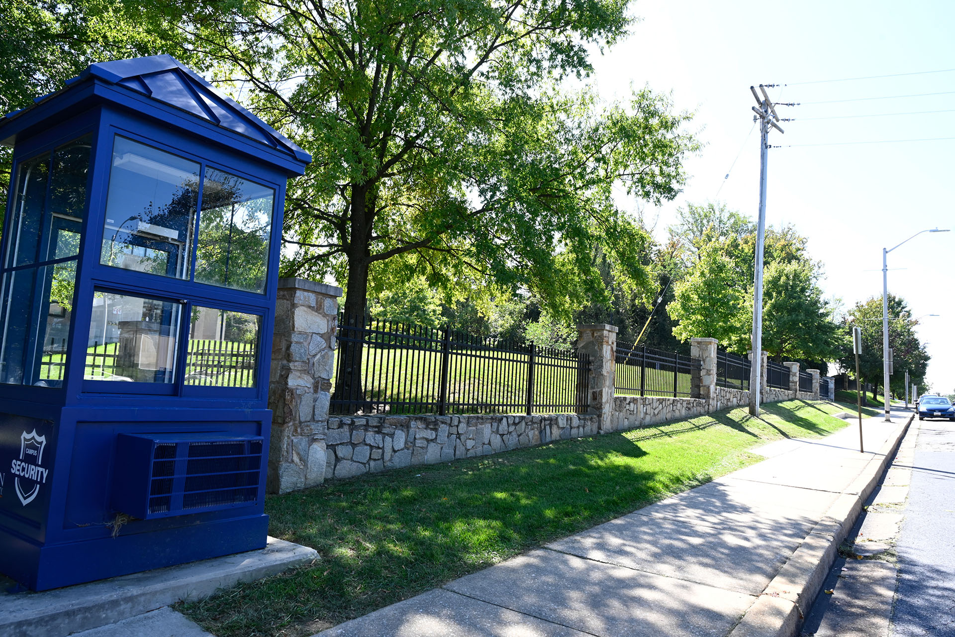 - Staffed security booths with security personnel throughout the campus and around the exteriors of the campus. The University is looking to add more security booths. One security booth has already been placed in the high traffic area in the vicinity of the Thurgood Marshall Dining Hall.