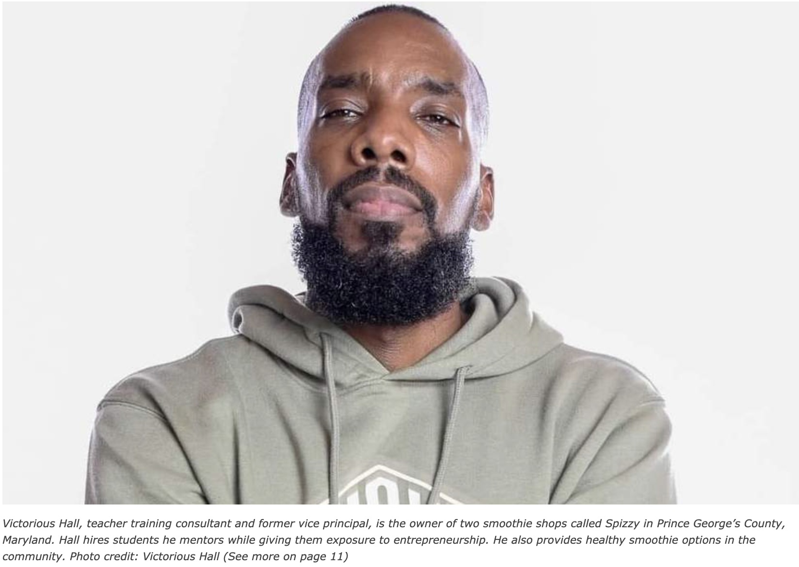 The bulk of Victorious Hall’s career was spent working at Oxon Hill Middle School. Mentoring was Hall’s college job in Baltimore City. Initially, he was studying business management at Morgan State University. Hall currently works as a consultant training teachers in schools across the nation. Spizzy has become his real-life classroom.