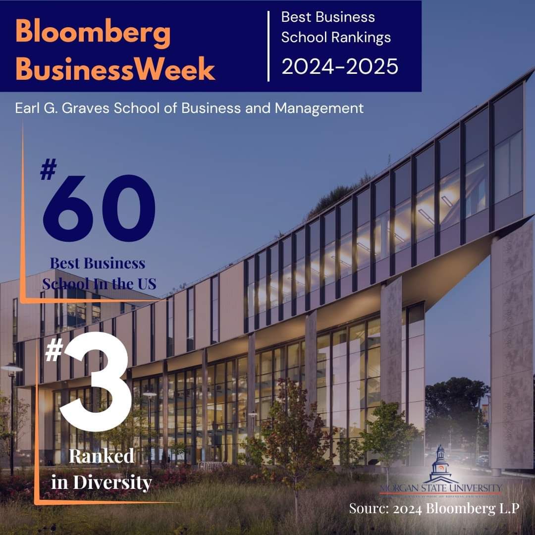 “Earning recognition from a trusted organization like Bloomberg Businessweek amplifies Morgan’s legacy of delivering exceptional academic settings designed to maximize the vast potential of our students while preparing them for professional success,” said David K. Wilson, president of Morgan State University. “This recognition not only highlights our leadership in business education but also underscores the transformative impact of our graduates on the global business community. It affirms what we’ve always known—that Morgan’s academic programs are of the highest caliber, celebrated nationally and internationally. Our continued ascent among the top universities is driven by a shared vision and the unwavering dedication of our exceptional students and faculty.”