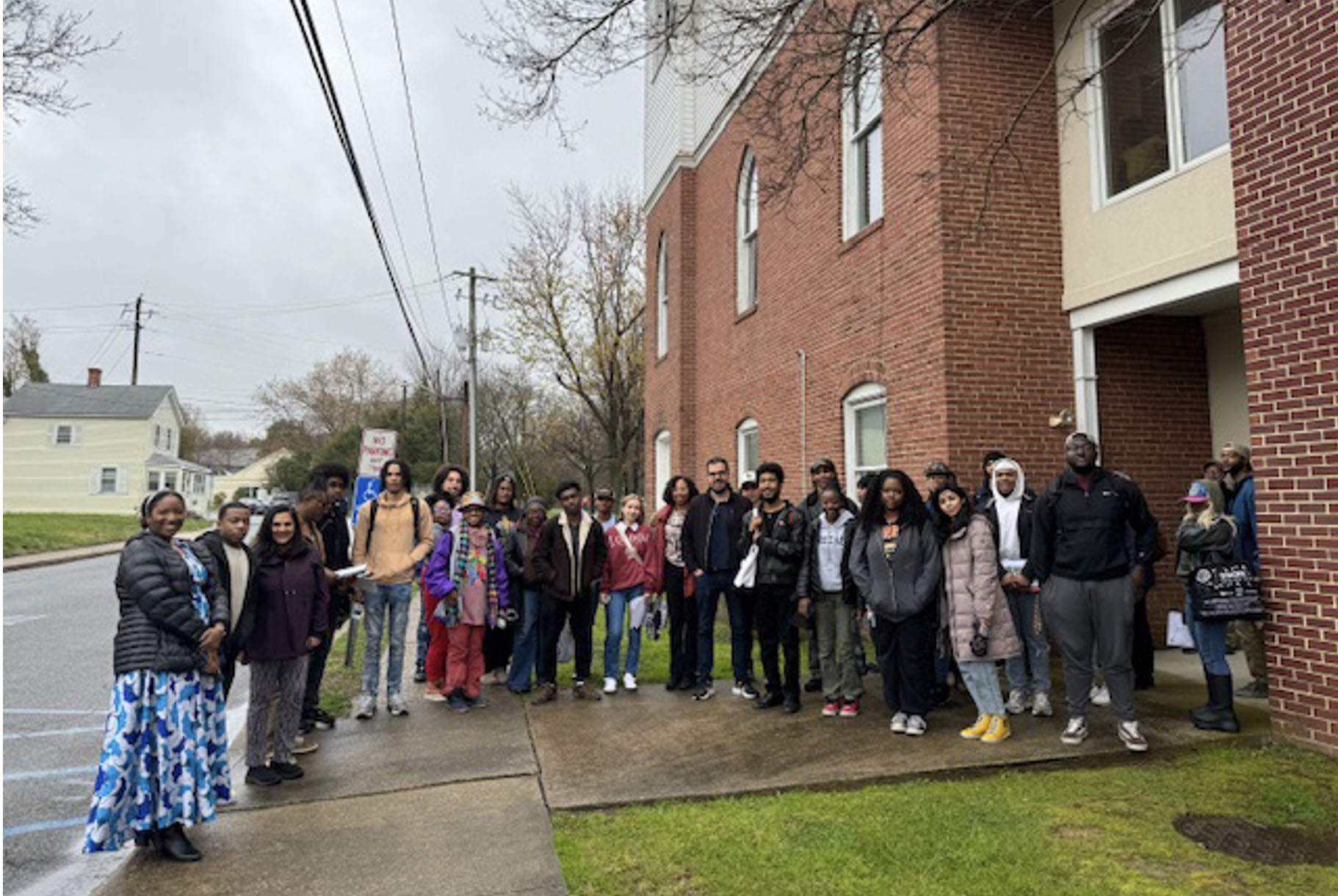 Taking a pause from their usual classroom instruction, two classes from Morgan State University’s School of Architecture and Planning (SA+P) left campus to participate in the Maryland Commission on African American History and Culture’s (MCAAHC’s) April public meeting. The faculty and students from the History of the Built Environment (ARCH 206) and Design and Human Behavior (ARCH 305) courses traveled to Chestertown, Maryland to learn firsthand about how the Commission invests its $5 million annual fund to preserve cultural African American sites throughout the state, and to hear from special guest speakers: actor and writer Ashleigh Hairston and Mariah Davis, an environmental justice officer for the Maryland Department of Natural Resources. The sizable Morgan contingent contributed to what is believed to be the largest attendance ever for an MCAAHC public meeting.