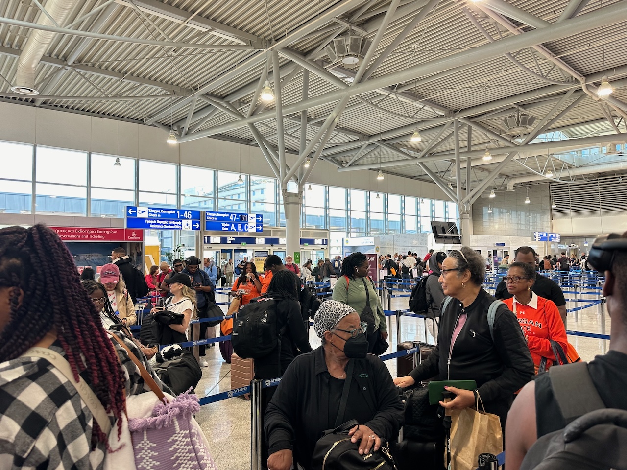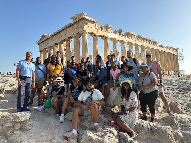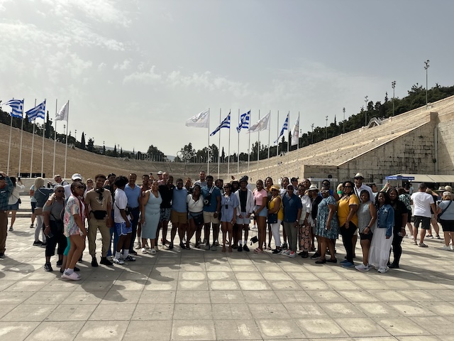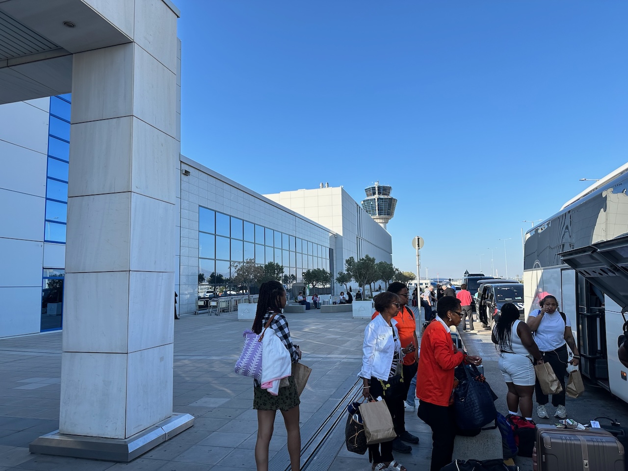 The Morgan State University Choir began our all-Greece tour on Monday, May 20, 2024. This year’s tour group includes 28 choir members with additional supporters, for a total group of 45. Our flight departed from Dulles Airport, where we boarded a red-eye Turkish Airlines flight to Greece. After a full 24 hours of travel, including a three-hour layover in Istanbul, Turkey, we arrived at our hotel at 11 p.m. Athens time — 4 p.m. Eastern Daylight Time.