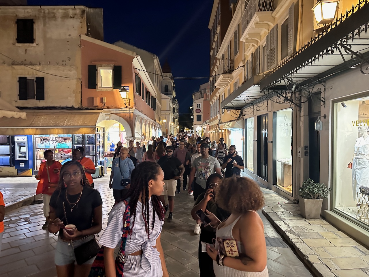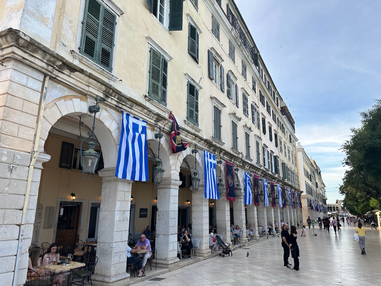 Upon arriving at Corfu, we only had a short 30-minute ride to our hotel, which we discovered was almost on the runway of the Corfu Airport! After a few hours of rest, we went to dinner in the historic town center. Given our limited time on the island, we immediately took a walk around historic Corfu. After a request from someone who recognized we were a choir, we were asked to sing one song. The choir broke out in song, which happened to be in front of the first opera house in Greece.