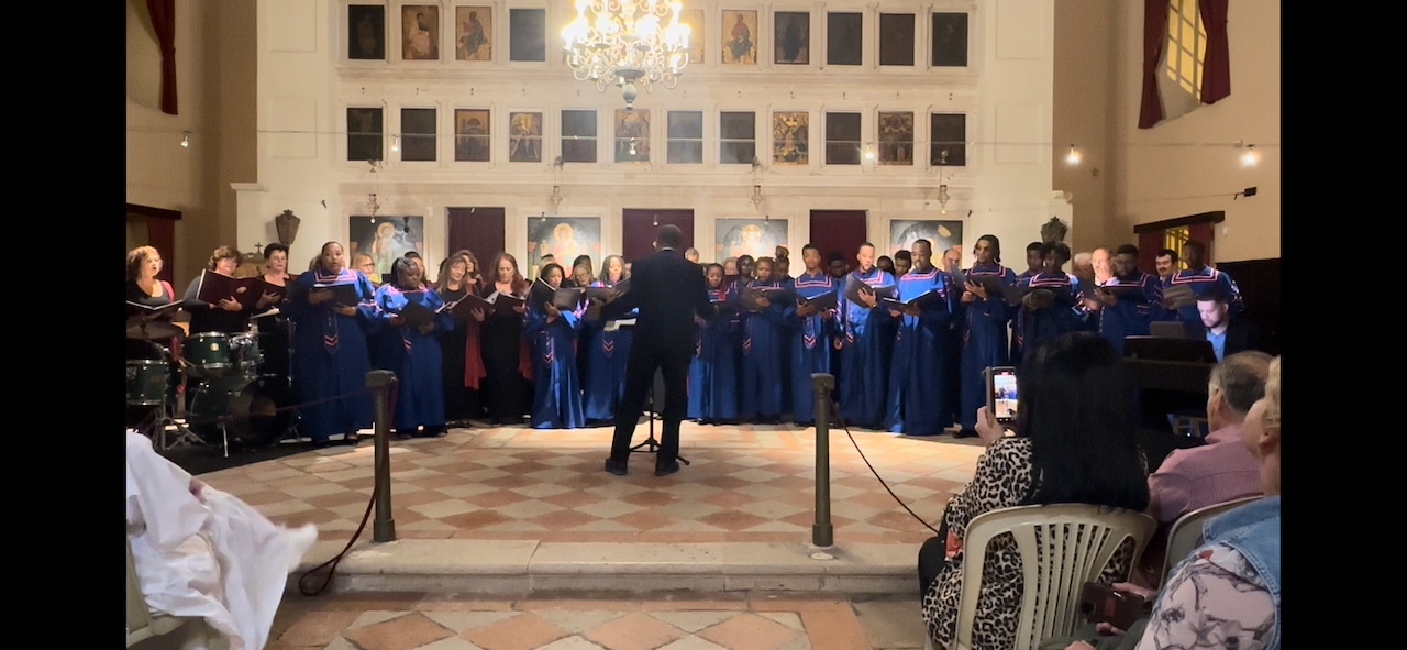 After a relaxing day walking around Athens, when the weather could not have been more perfect for a walking tour, we returned to get dressed for our first concert. As one might imagine, given that Greece is where democracy began, it has more protests than most countries, although peaceful. As fate would have it, outside our concert venue, a block from the Parliament building, protests were being made rather exuberantly. Unfortunately, this impacted the attendance, as some entrances to the church had to be blocked. Many parishioners could not attend the Thursday night concert or the earlier mass, but as with many churches in the United States, they had an awesome streaming platform that was able to stream the concert.