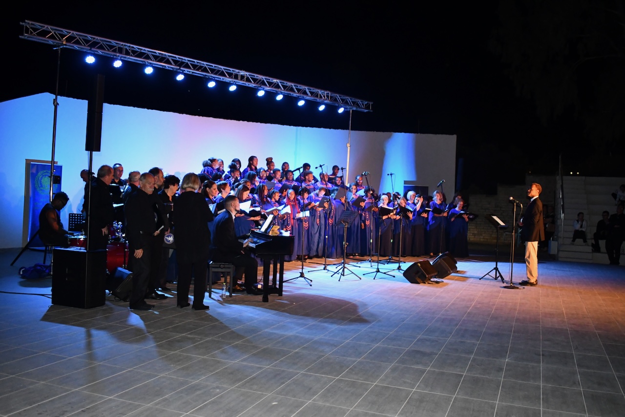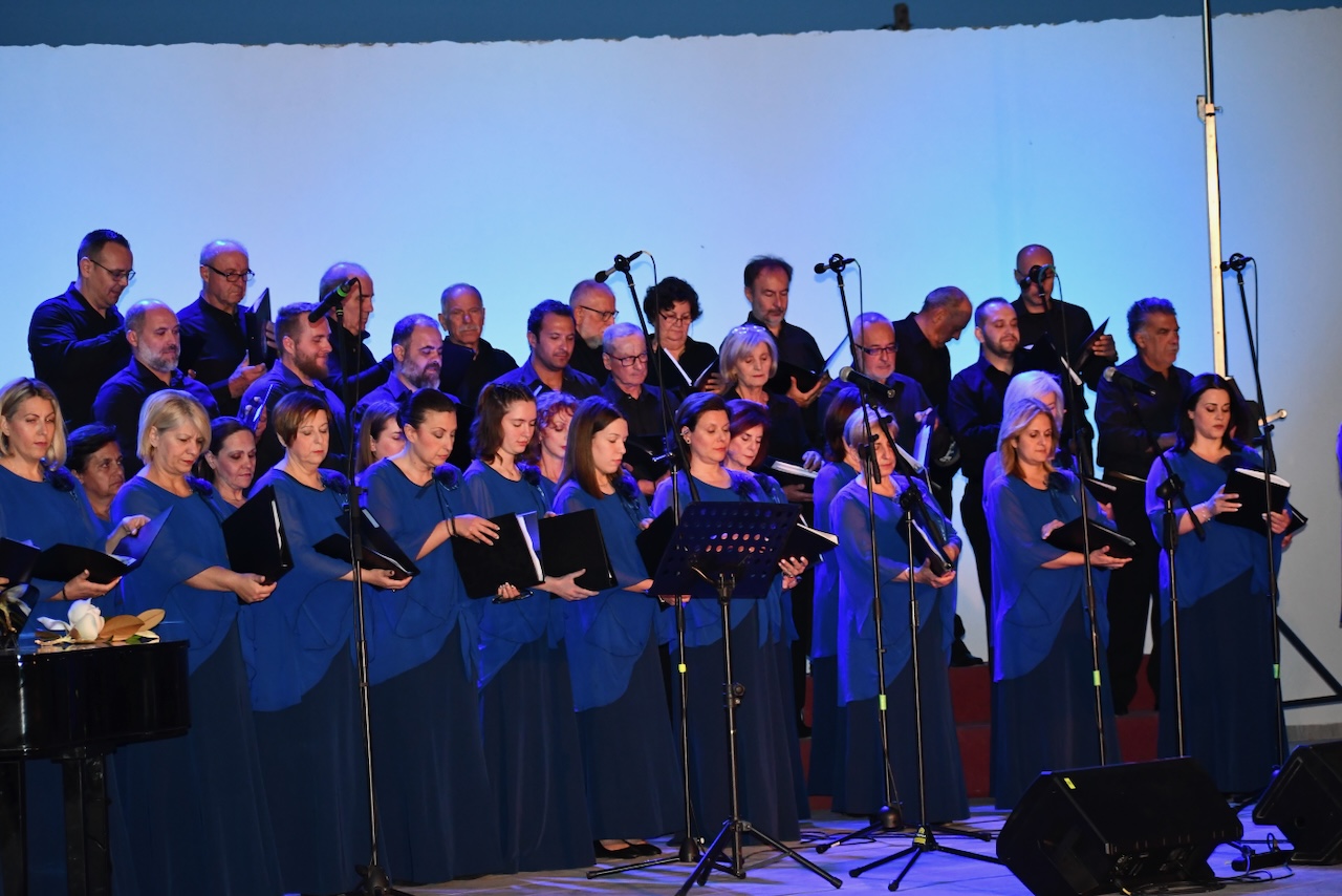 We were surprised that our concert began at 9 p.m. We were told that in Greece, particularly in the summer months, no activity begins before 9 p.m. It is not unusual to begin evening meals as late as 11 p.m. The deputy mayor and president of the Port Authority were on site to welcome the choir. As with our Corfu performance, a local choir opened the concert. The Mesolongi choir was large, with close to 50 singers. Being the inaugural performance and after a beautiful, sunny day, we had a great audience. Once again, the two choirs sang a Greek song together as an encore finale.