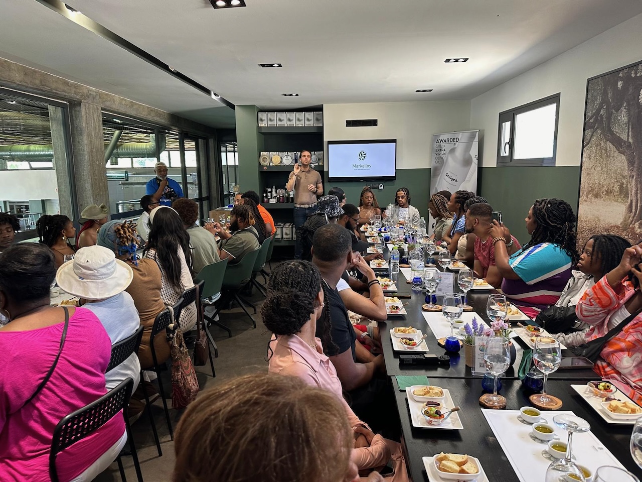 Much like a wine tasting tour, we had an olive oil tasting tour, where one of the owners spoke about his company and its processes. We saw the machines that extracted, de-pitted and ultimately pressed the olives to produce the oil. He spoke about the different flavors of olive oils, noting the higher polyphenol olive oil — for improved health — should taste the most bitter. Everyone sat in front of a place setting at a table and tried several different varieties of olive oil — with bread to dip! This family-owned business sold their olive oil, as well as soaps, lotions and shampoos made with olive oil. At the end of the day, we knew more about olives and olive oil than we would ever have considered!