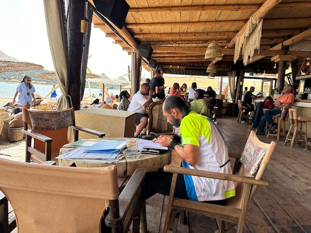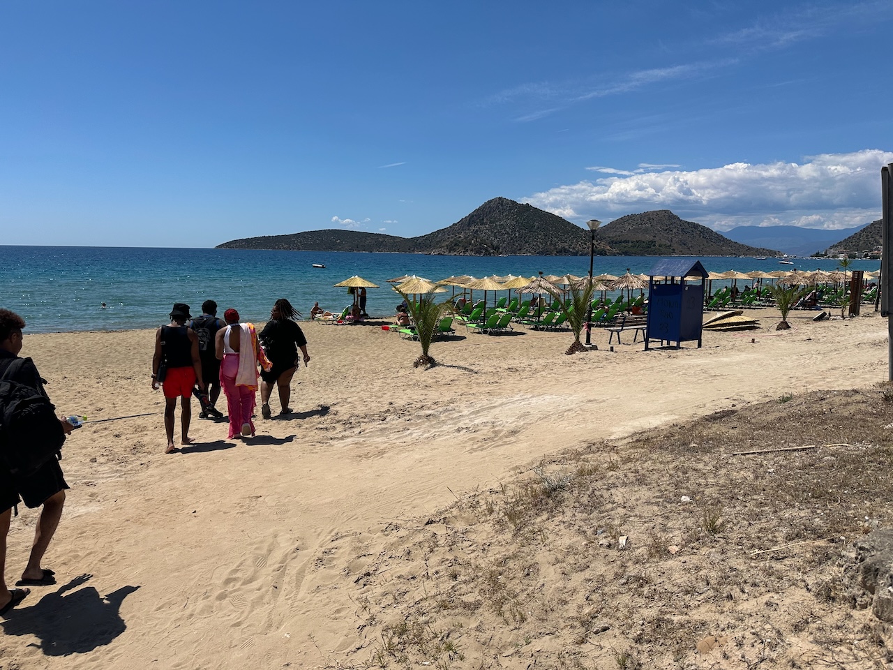 Our first stop was to see the Panathenaic Stadium, the site of the first modern Olympic Games, in 1896. This is still the place where the Olympic torch begins its journey to the next Olympic Games — this year in France! From the former Olympic stadium, we had an hour and a half drive along the Greek coastline to the second most famous temple in Athens, the Temple of Poseidon. After the temple visit, we stopped at a restaurant on the beach, where we could order our lunch and/or swim!