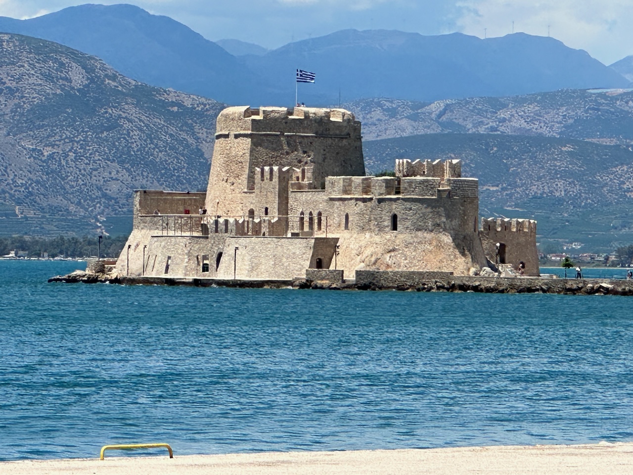 Day 11 was our last full day in Greece! We enjoyed our last buffet breakfast in the country, with an absolutely breathtaking view of the Nafplio Harbor, whose centerpiece was the Bourtzi Fortress. The Venetian-built fortress is the symbol of Nafplio, seen on many souvenirs. It is interesting that, for many years, the fortress was used as a prison, where prisoners who were to be executed would live out the last days of their lives. Looking at the fortress, it was reminiscent of Alcatraz or Robben Island.