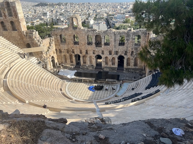 As with an earlier concert, our performance this evening was opposite another Greek sporting event, a European Soccer final, when most citizens in Greece were home watching the big game. The Greek team won the Europa Conference League title for the first time! In the middle of the night, one could hear the loud celebrations in the streets. Some of us were somewhat concerned that it sounded like a riot, but here in Greece, all celebrations were civil!