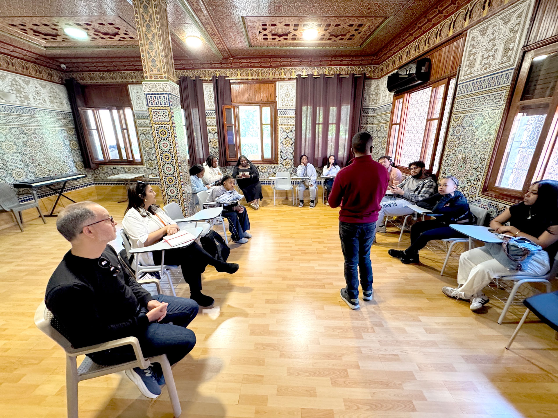 The itinerary, designed by the Center for Languages and Cultures (CLC) in Marrakech, balanced structured learning with cultural immersion. Students participated in hands-on workshops like learning Darija (the Moroccan dialect of Arabic), practicing traditional Tagine cooking, and reflecting on the significance of Ramadan during an intimate Iftar dinner hosted by a local family.