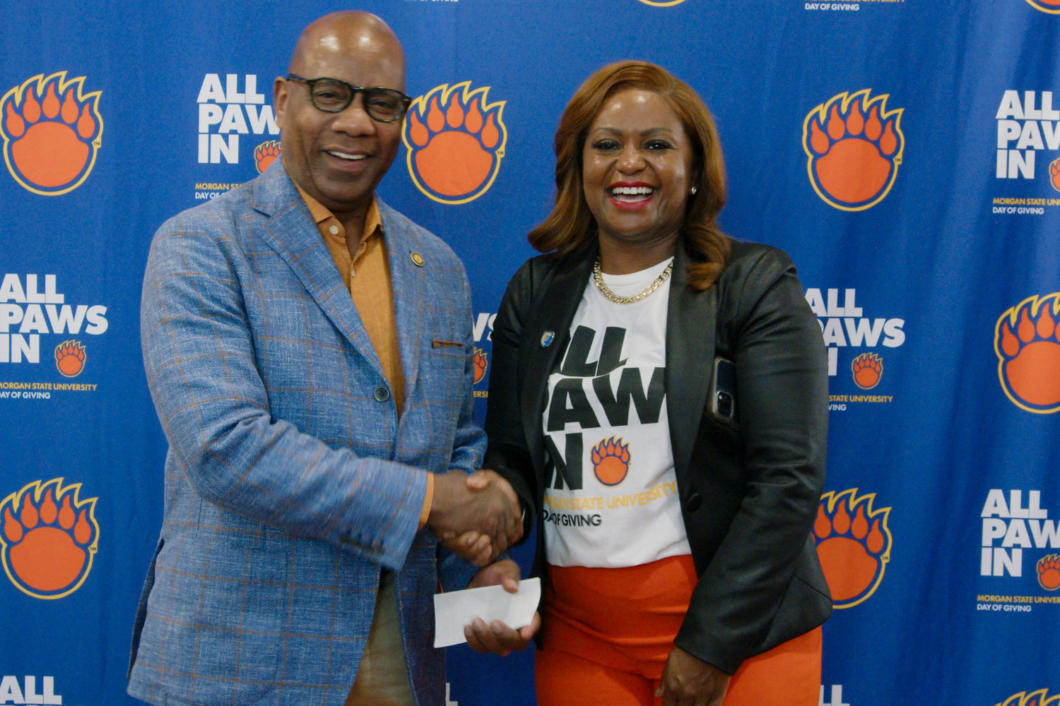 Led by the Division of Institutional Advancement’s Office of Development in conjunction with Morgan State University Foundation, the All Paws In campaign encouraged supporters to contribute to areas that resonated personally with them — including scholarships, research, student support services, athletics, and arts and culture. Notably, based on identifiable donor data, more than 60% of the gifts came from alumni, underscoring the deep and lasting bond between Morgan and its graduates. The largest gift came from the transportation services company Enterprise Mobility, which contributed $50,000. There was also a $25,000 gift from President Wilson himself.