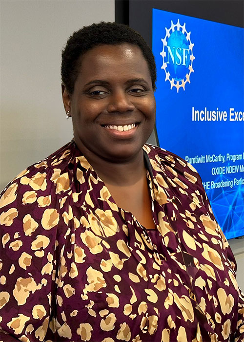 Pumtiwitt McCarthy, Ph.D., researcher and associate professor of Chemistry in Morgan’s School of Computer, Mathematical and Natural Sciences, was awarded an Intergovernmental Personnel Act (IPA) grant providing a temporary assignment at the National Science Foundation headquarters and central offices.
