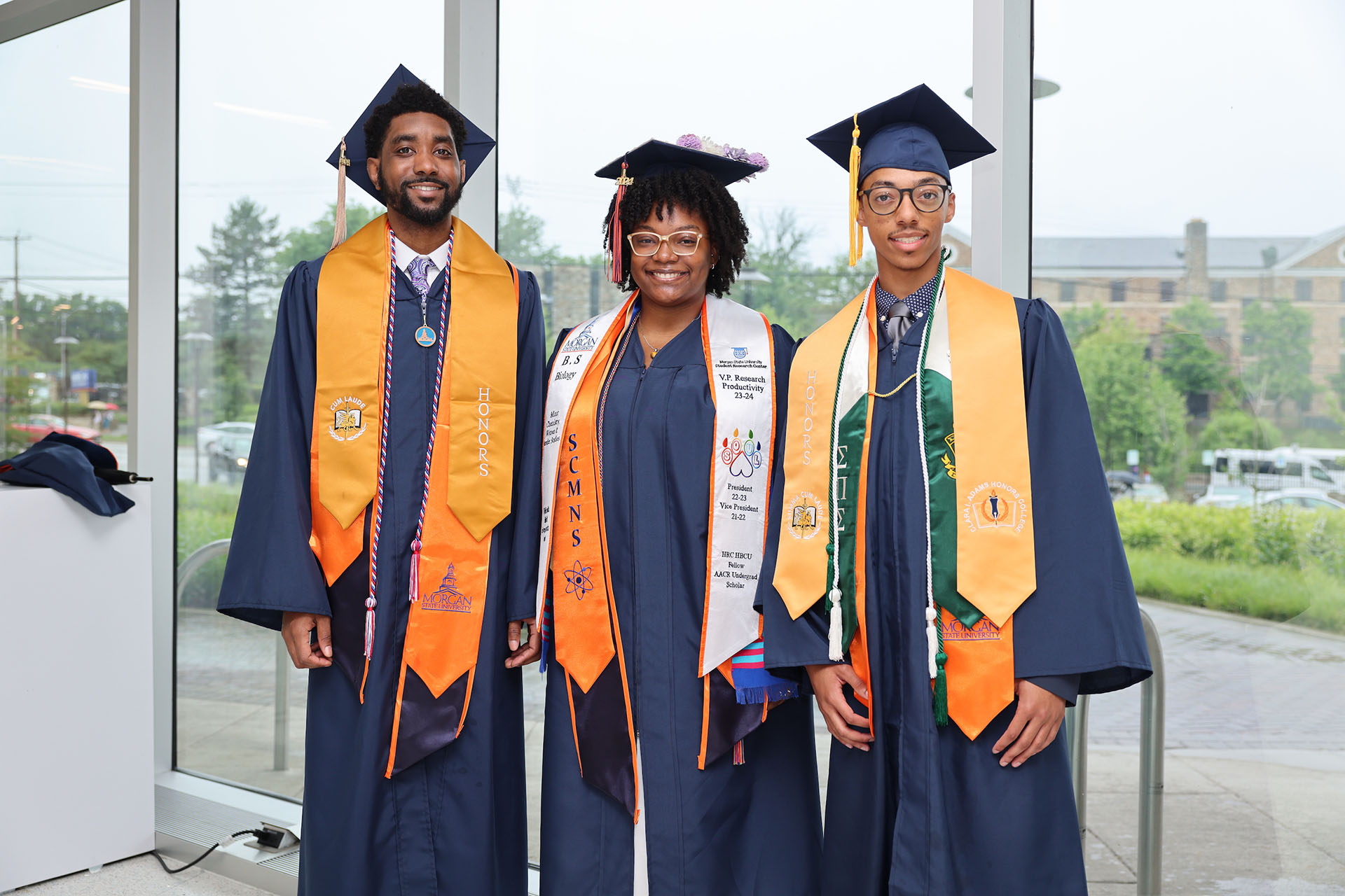 The Spring Class of 2024 also embodies Morgan’s 157-year tradition of students’ service to the broader community. Bachelor of Science in Social Work graduates Desiree Lane, from Brooklyn, New York, and Khalia Scott, from Baltimore, joined Class Valedictorian Cordelia Otono, from Parkville, Maryland, as recipients of the School of Social Work’s Dr. Mildred McKinney Outstanding Community Service Award. Lane and Scott gained recognition this year for their research of Ethical Considerations in Using AI in Social Work Education and Practice.