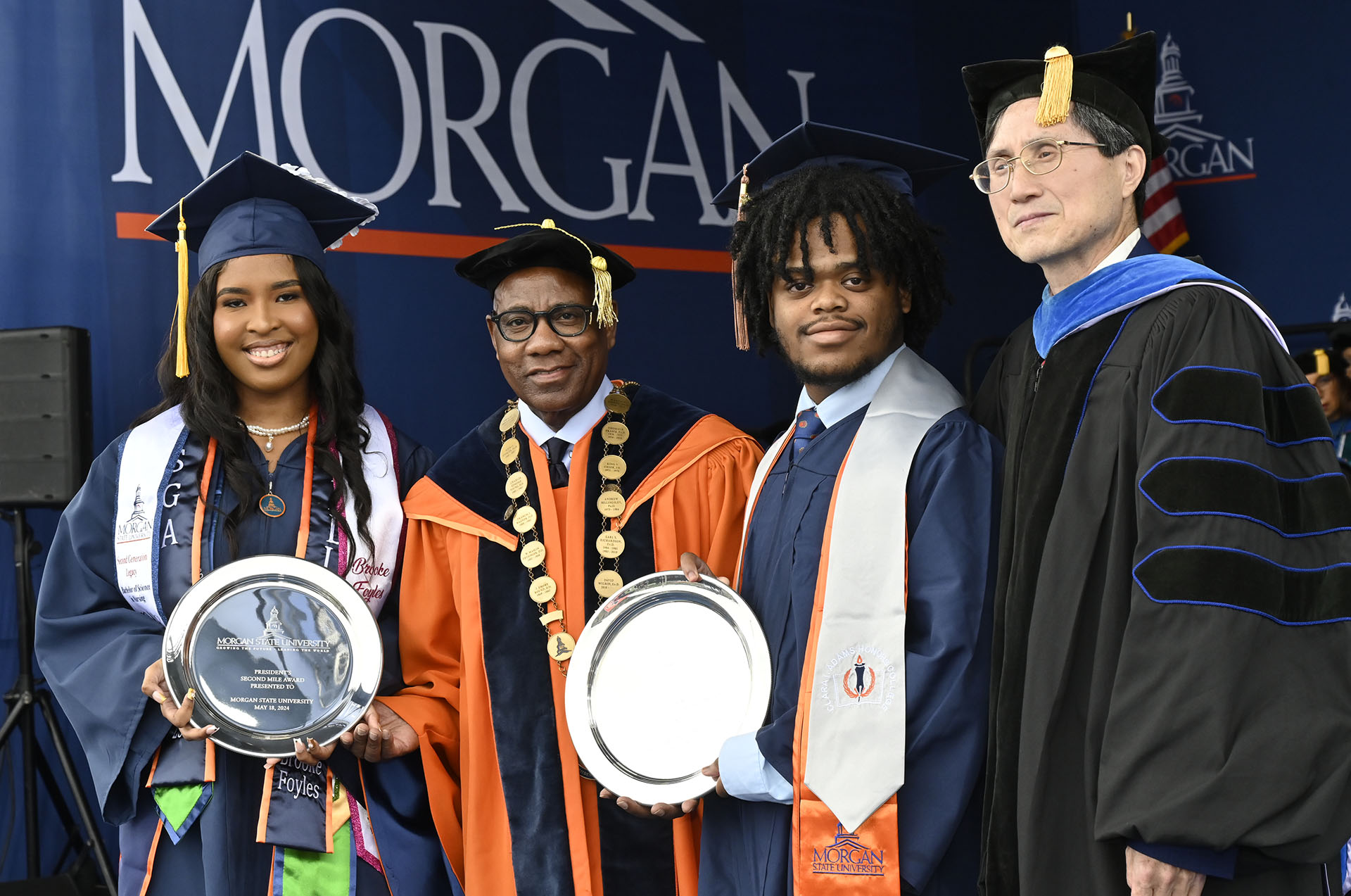 The two recipients of the undergraduate awards from Morgan President David K. Wilson exemplified the force driving that success. Nursing candidate Brooke Foyles accepted the President’s Second Mile Award for outstanding leadership and participation in student affairs, and Computer Science candidate Theodore (“Teddy”) Wimberly received the President’s Award for Exceptional Creative Achievement.