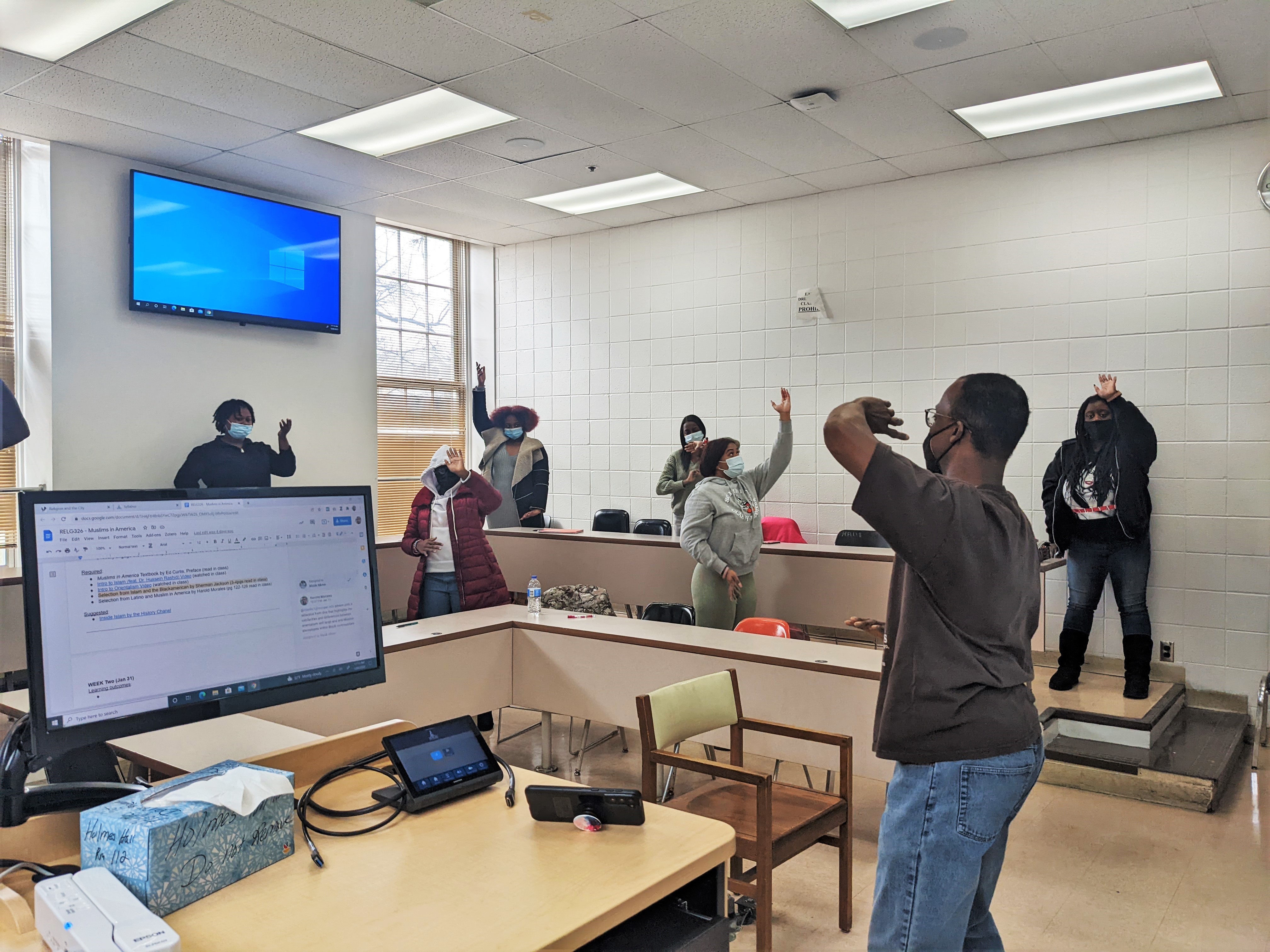 In a move toward centering its students' mental health and holistic approaches to teaching, Morgan State University’s World Religions, Global Cities class, led by Dr. Harold D. Morales, starts off some of its instruction with music and Tai Chi Chuan exercises. Morgan's Religion and Cities Community Engagement Fellow and alumnus, Stanley Jenkins, has been leading the exercises with students before engaging in discussions about the definitions and complex relationships between religion and cities.