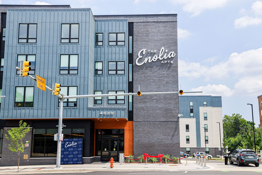 Before even opening its doors, the project has been a stimulus for new investment. Three new local businesses have opened on the block over the last year. The university continues to experience surging enrollment and is working diligently to renovate and build new on-campus dorms. As the first apartment building specifically developed to serve MSU students in 20 years, The Enolia provides some immediate relief.