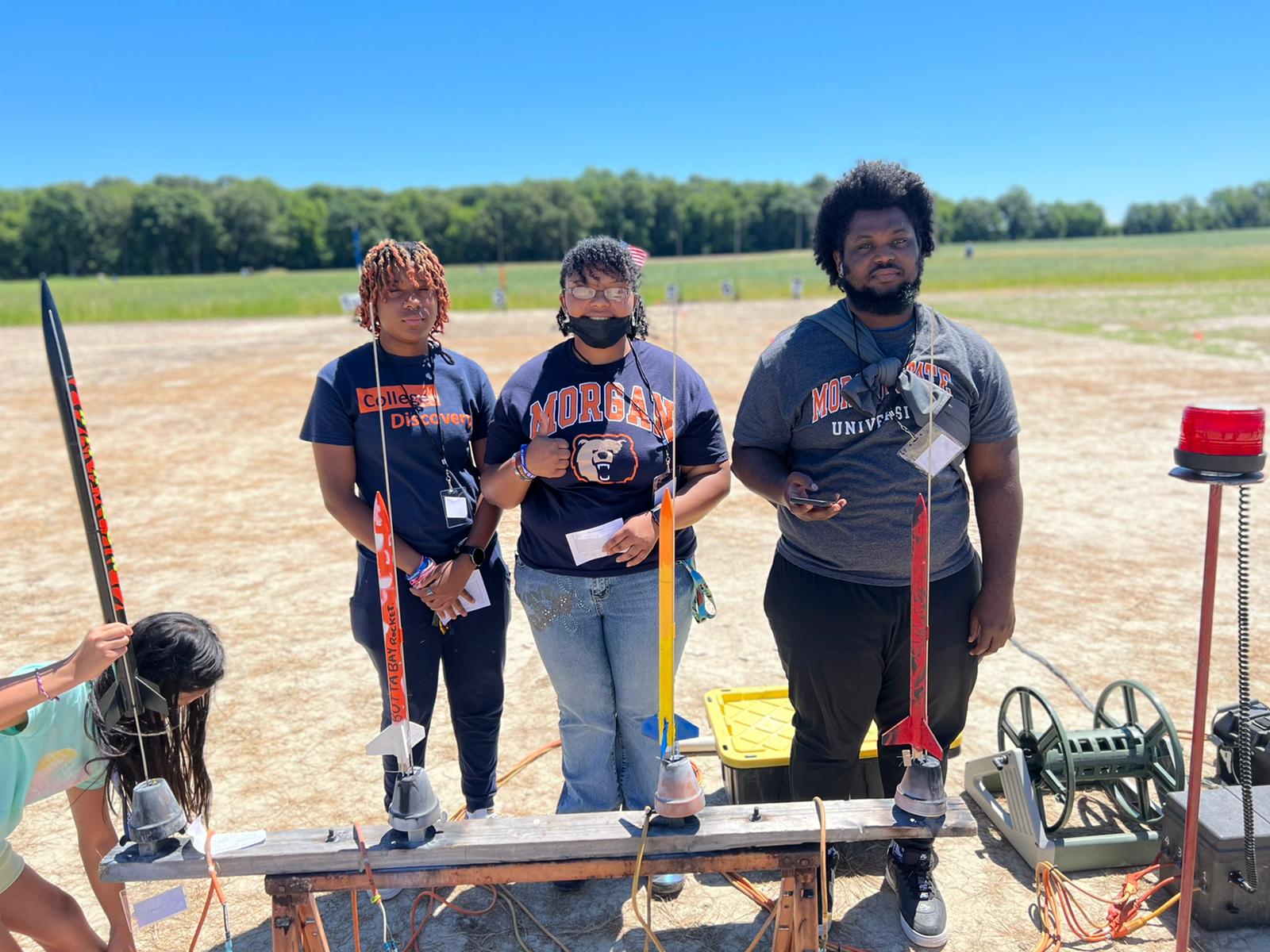 High school students in OCS’s College Discovery Next Generation Scholars Program participated in 9-hour five-week rocketry exploration facilitated by the Defense and Space Program, School of Engineering at Morgan State during the summer of 2022. This theoretical and hands-on exploration was done on site in Morgan’s Rocketry Laboratory. The history and the different components of a model rocket, its respective roles, launching a model rocket, how a rocket works, the safety aspect of model rocketry and simulating flights were taught and experienced. The goal was to have each student simulate “his” own rocket and then compare the theoretical apogee with the actual one recorded after the flight of the rocket. The hands-on part of the project consisted of safely assembling, launching,and recovering the model rocket. This exploration culminated with the students traveling to the Central Sod Farm in Centerville, MD to launch the rockets they built. The launch height in the air was 2000 feet.