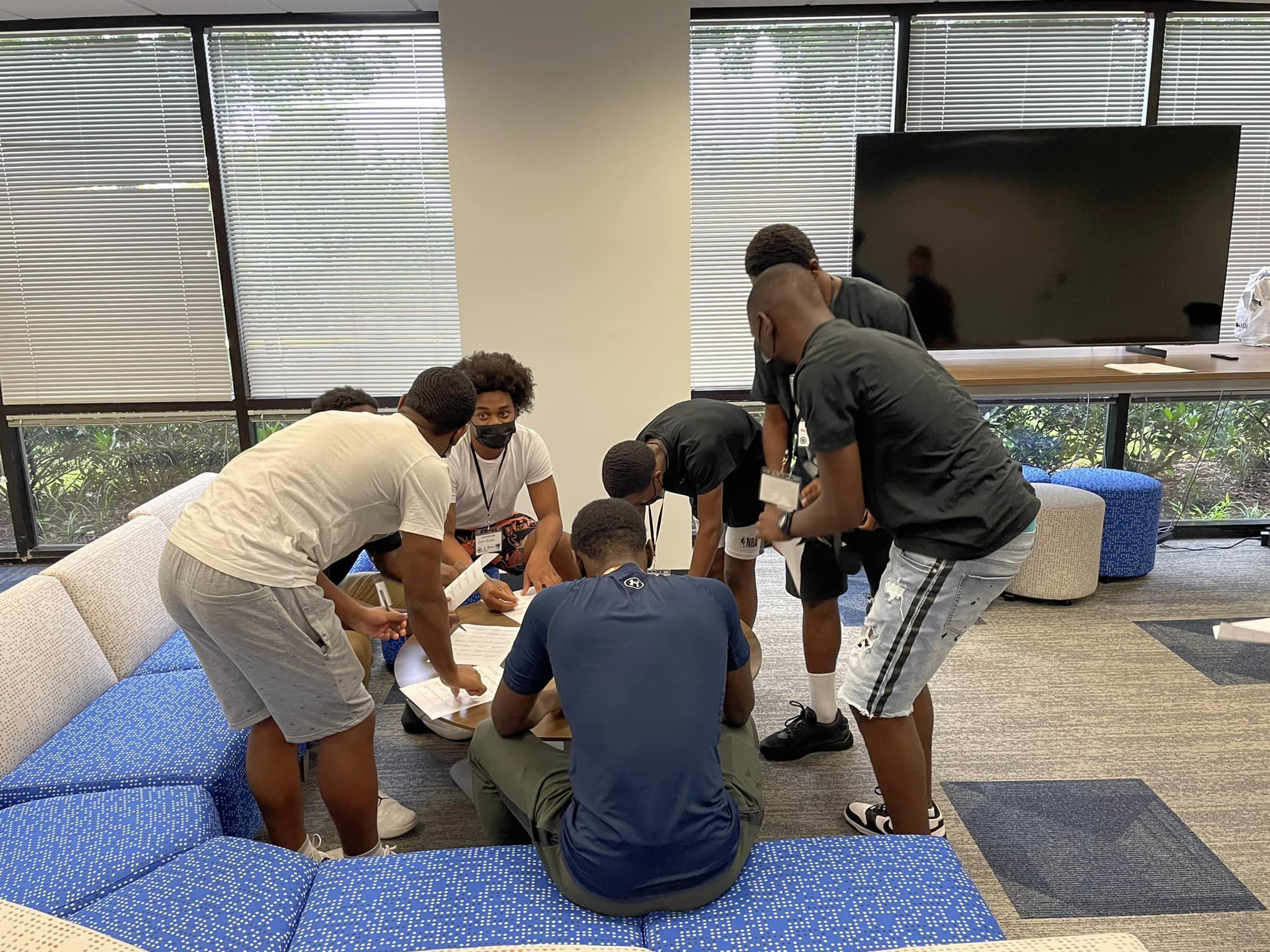 In 2022, high school students in OCS’s College Discovery Next Generation Scholars Program invited students from the Baltimore Division STEM Wrestling Camp Beat the Streets-Baltimore to participate in a one-day internship program at The National Reconnaissance Office in Chantilly, VA. This trip was sponsored by the Defense and Space Program in the School of Engineering. (Beat the Streets is a national organization that works with students to empower and transform their lives through wrestling as a sport). Students learned about building car testing sensors, 3d printing of shields and how to create team names on them. They participated in interactive videos demonstrating satellite orbits. One student shared “we experienced first-hand what a job in the STEM field looks like.” A mentor added,“Getting an experience like this is important exposure for the kids, because kidsfrom Baltimore city need more encouragement, and opportunities are not presented to them like this normally. I took advantage of being at this event, gained new knowledge and asked about internship and job opportunities in the NRO or around the area.”
