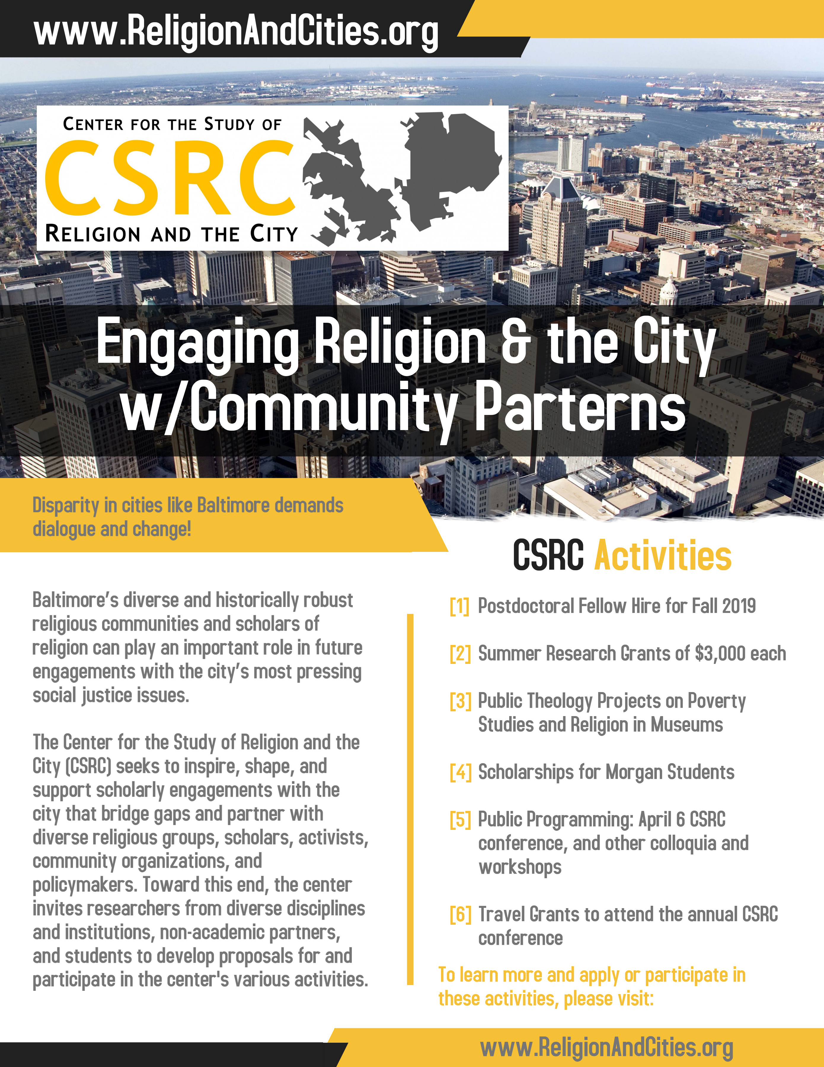 Housed at Morgan State University, The Center for Religion and Cities launched in 2018 with a generous grant from The Henry Luce Foundation. The Center is supported by The James H. Gilliam Jr. College of Liberal Arts, The School of Architecture and Planning, and The Department of Philosophy and Religious Studies.