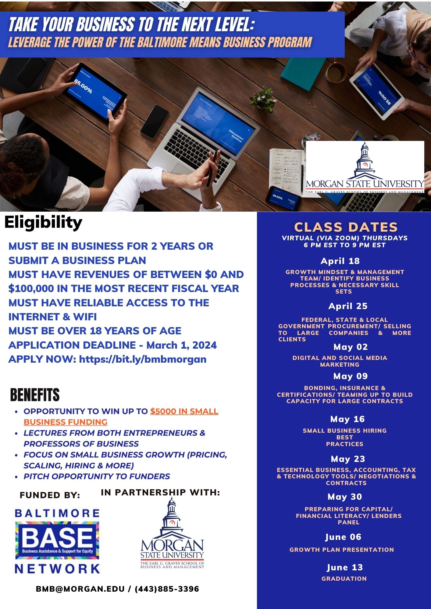 Our program designed by Morgan State University's Graves School of Business and is available at no cost to selected applicants.