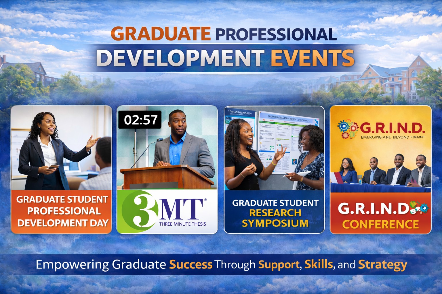 The Graduate Student Association (GSA) hosts the annual G.R.I.N.D. (Graduate Research, Interdisciplinary Network, and Development) Conference each April. For the past three years, it has been part of the Office of Undergraduate Research's Spring into Research Week, providing graduate students with valuable opportunities to showcase their work. The conference features panel discussions, workshops, and oral/ poster presentations, fostering interdisciplinary collaboration and professional growth. Dr. Kevin Bradley serves as the GSA's staff advisor, supporting its initiatives.