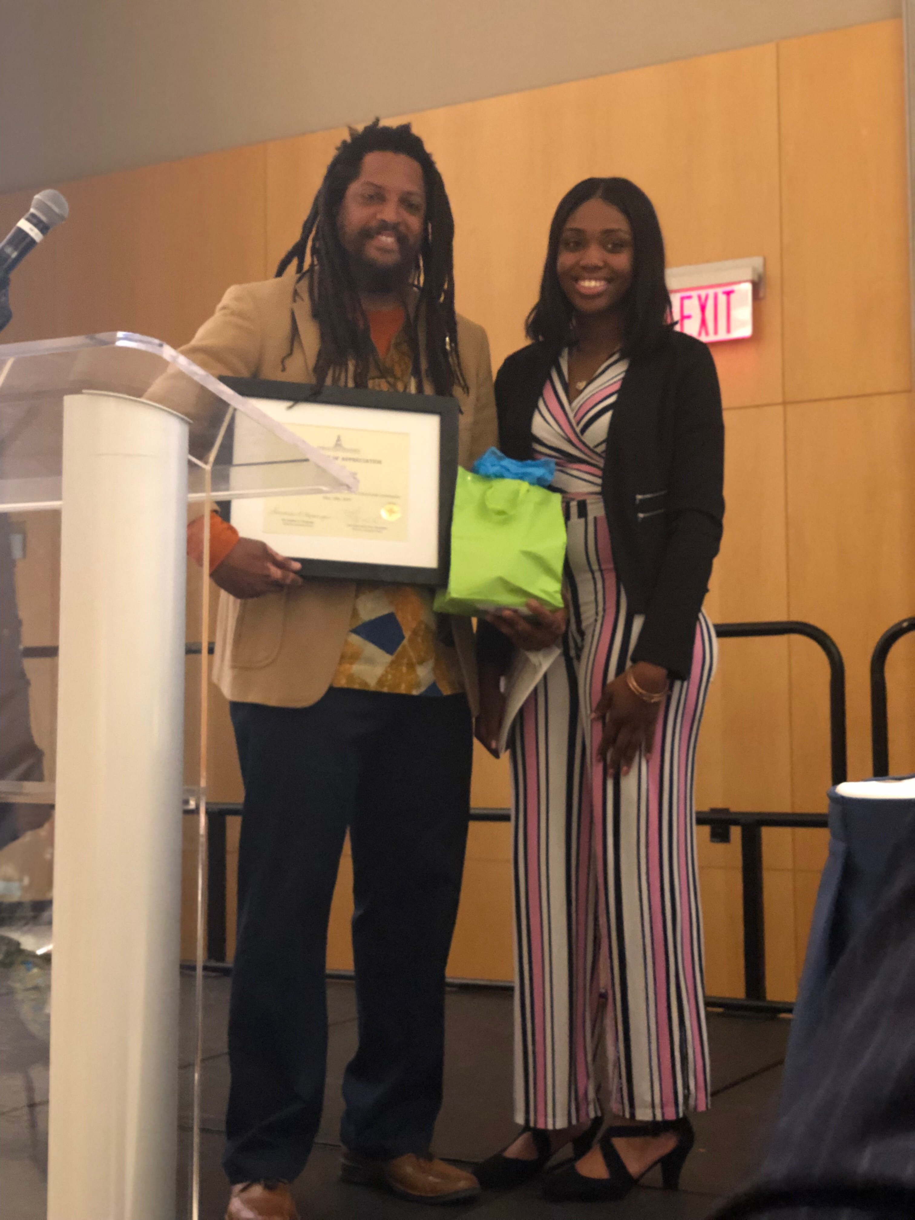 Pictured above: Banquet and Awards Ceremony Keynote Speaker and BSW Alum, Mr. Eric Jackson with 2019-2020 School Social Work Organization President, Amira Jabbar.