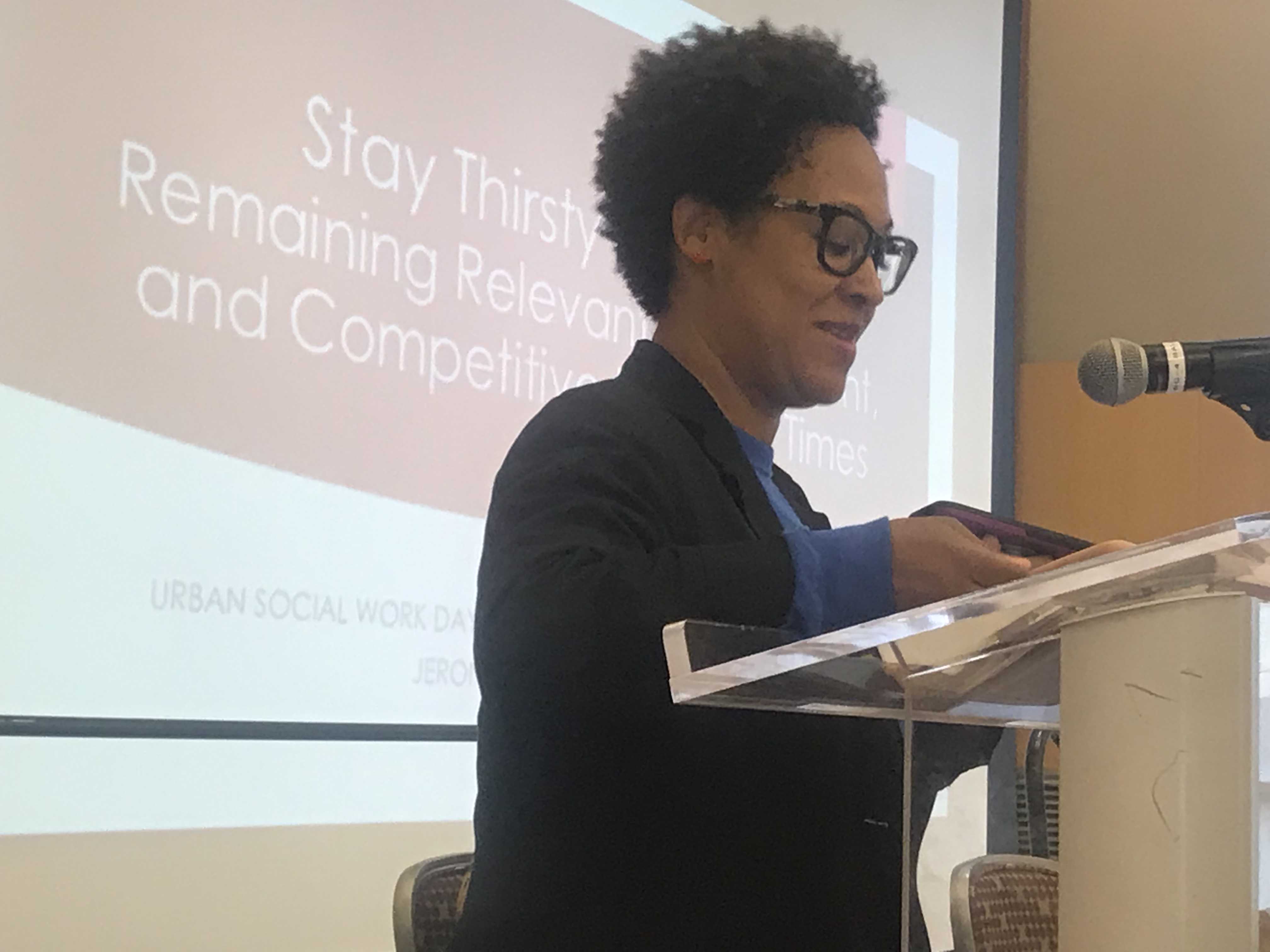 Pictured above: Urban Social Work Day Keynote Speaker, Dr. Jeronda Burley, Assistant Professor, Coppin State University.