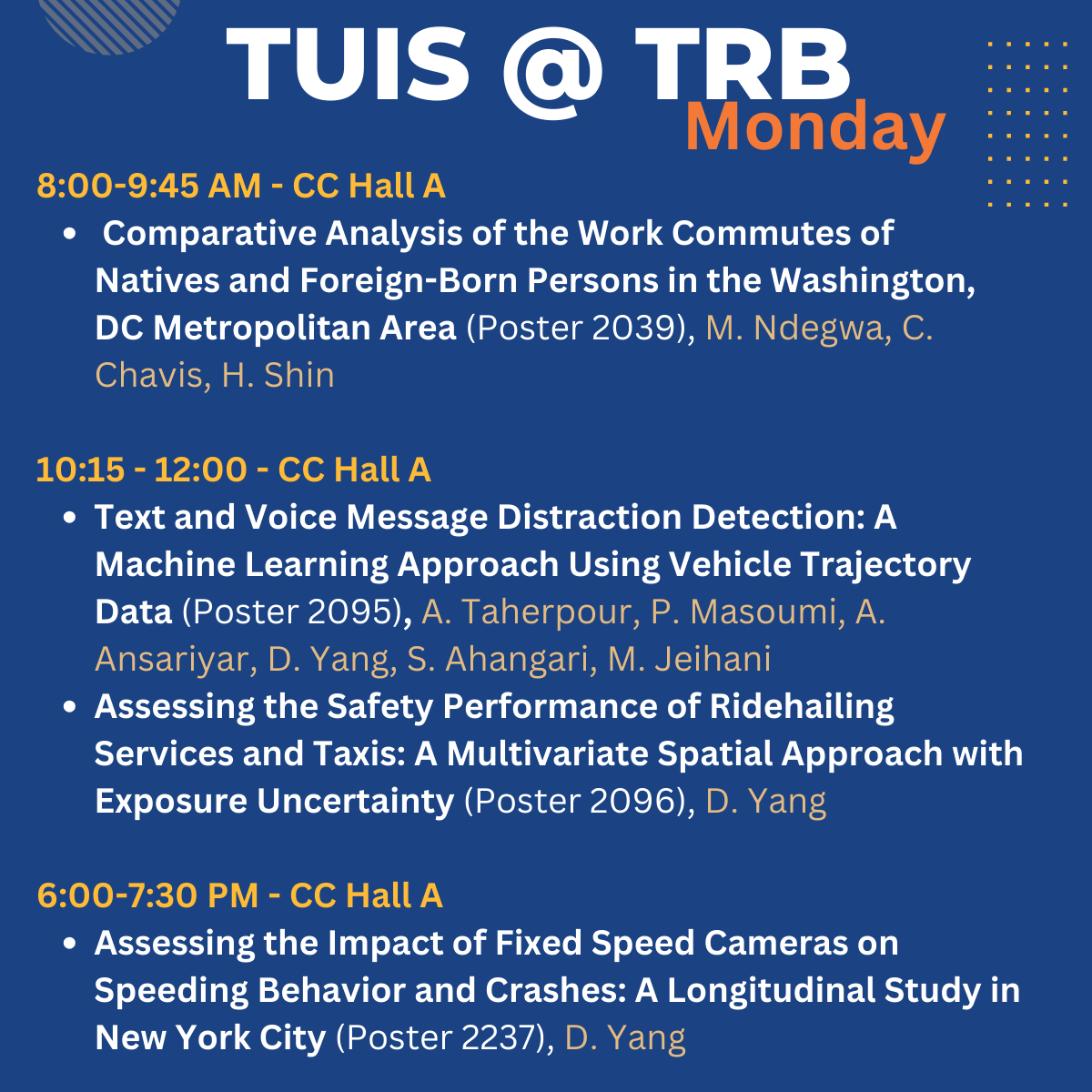 Faculty and students in the Department of Transportation & Urban Infrastructure Studies (TUIS) are sharing their research at the 2024 Transportation Research Board (TRB) Annual Meeting.